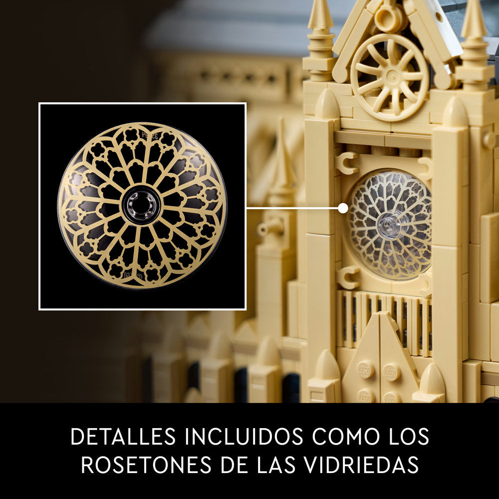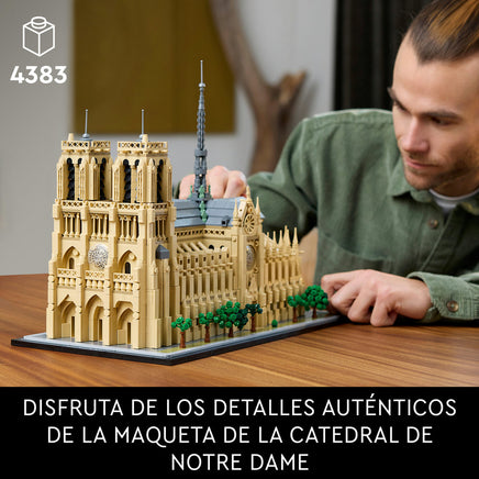 Vive cada etapa del desarrollo de uno de los monumentos parisinos más icónicos con el set de construcción para adultos LEGO® Architecture Notre Dame de París (21061). Esta maqueta arquitectónica te llevará a disfrutar de un viaje por la historia del edificio que comienza en 1163, año en que se puso la primera piedra, y continúa por la restauración a cargo del arquitecto Viollet-le-Duc en el siglo XIX hasta su majestuosa apariencia antes del incendio de 2019. Recrea el ábside semicircular, las torres campanario, los rosetones y la aguja central rodeada de estatuas, e incorpora la placa de identificación para poner el mejor broche a un espectacular modelo de exposición de Notre Dame. Quita el techo de tu creación para admirar las columnas y arcos de las naves, y levanta las torres para examinar de cerca el interior. Este set LEGO Architecture Landmarks Collection es el mejor regalo LEGO para adultos creativos interesados en la historia, la arquitectura, el arte, los viajes o Francia.
